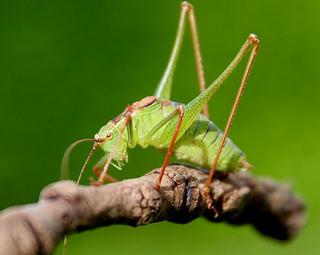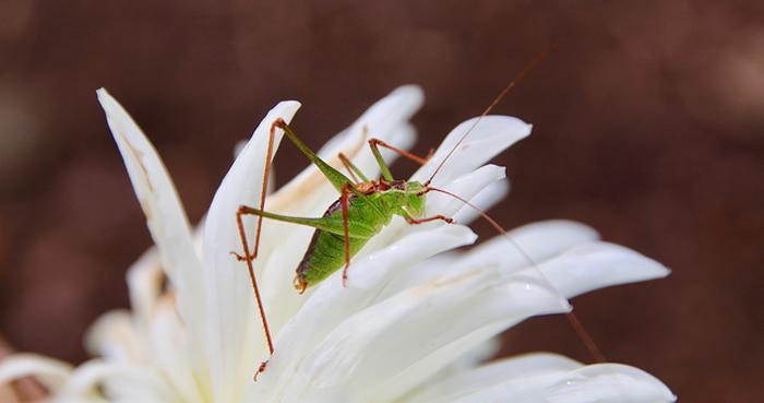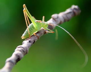 L’ensemble est pourtant harmonieux. La silhouette de l’abdomen, certes trapue, est équilibrée par les longues et fines pattes arrière. Sans oublier les antennes filiformes. Interminables. Quatre fois plus longues que le corps !