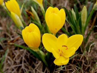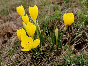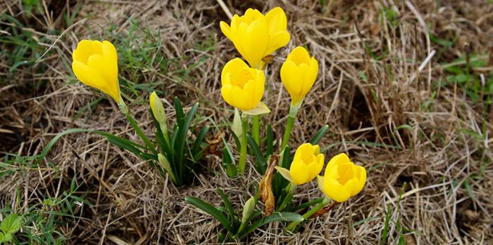 Ni crocus, ni colchique… La Vendangeuse jaune (Sternbergia lutea) illumine talus et pieds de haies en ce début octobre. Pas vraiment dans le marais, mais sur les coteaux calcaires aux abords des villages. De petites colonies serrées dont l’éclatant jaune d’or tranche sur l’herbe encore grillée par le soleil.