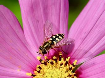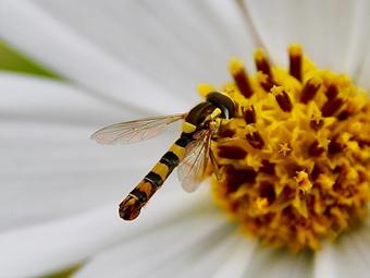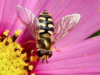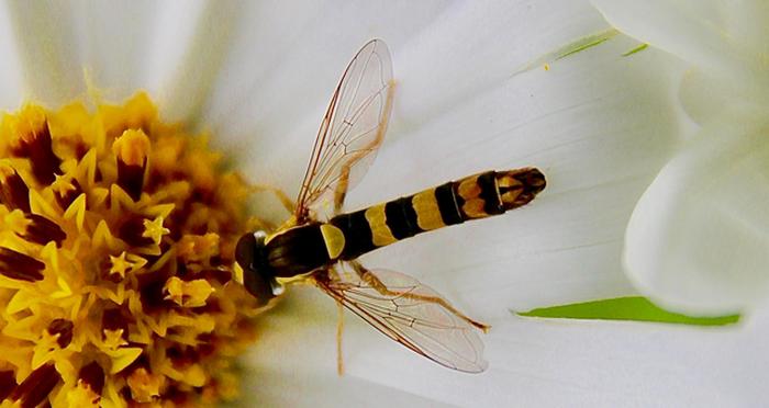 Dans la série des syrphes imitateurs des guêpes, le Chrysotoxe intermédiaire (Chrysotoxum intermedium) mérite assurément une mention spéciale ! Il est certes un peu massif, mais sa livrée noire et jaune entretient suffisamment le doute pour décourager les prédateurs.