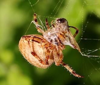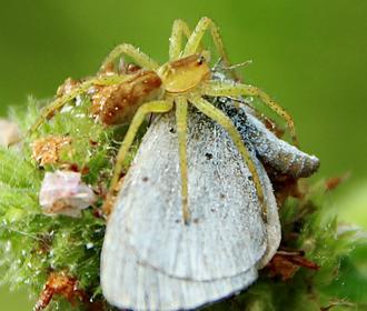 À vrai dire, l’agitation désespérée ne dure que quelques secondes. Jusqu’alors bien cachée, la grosse araignée surgit de nulle part et se rue sur sa proie. Celle-ci est vite « emmaillotée ». Plus aucun mouvement n’est possible dans cette camisole de soie blanche.