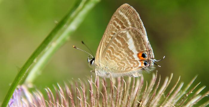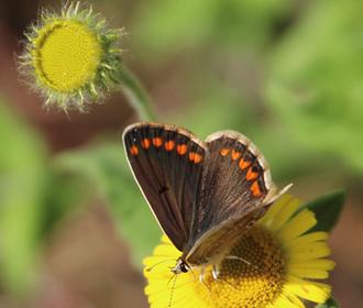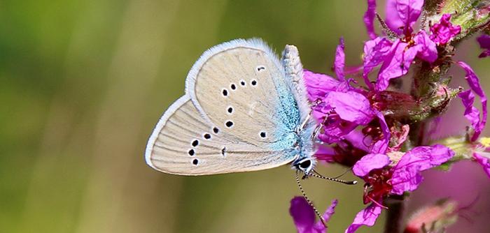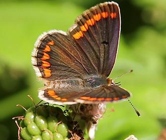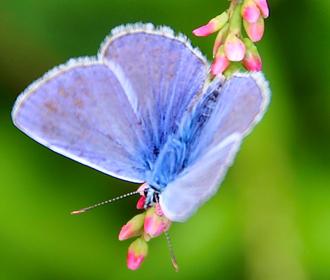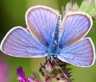 Ce bleu n’est pas uniforme, mais fortement veiné et bordé de brun puis souligné d’une frange blanche. On retrouve celle-ci chez la femelle dont le dessus des ailes est par ailleurs uniformément brun.
