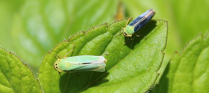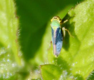 Le langage courant amalgame parfois la Cicadelle verte (Cicadella viridis), familière des prairies humides, et la Cicadelle des grillures (Empoasca vitis), ravageuse de la vigne. Il est vrai que la seconde est d’un vert bien franc. La confusion n’est cependant pas possible avec la première, verte certes, mais plutôt joliment turquoise, mêlée de jaune-vert. Pour sa part, le mâle se distingue avec des ailes bleu foncé à l’avant, bleu ciel à l’arrière.