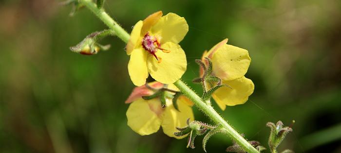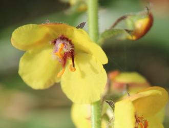 Après la fauche estivale des bords de routes et de chemins, quelques fleurs tentent à nouveau leur chance parmi le regain d’automne. Oh bien sûr la Molène blattaire (Verbascum blattaria) sait bien que le temps lui est compté avant les premières gelées. Elle n’aura guère le loisir d’élever très haut sa hampe florale. Mais ses corolles sont toujours aussi lumineuses !