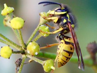 Autre spécificité de la Germanique : les petites bandes jaune vif qui bordent les côtés du thorax sont discrètement renflées en leur centre. Le distinguo est décidément très ténu… Pour le reste, l’une et l’autre ont un mode de vie très semblable.