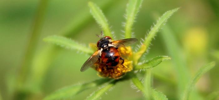 Cela dit, là encore, l’illusion se dissipe assez vite. Car, le frelon ne visite pas les fleurs pour leurs sécrétions sucrées : carnassier, il passe de corolle en capitule pour y surprendre et capturer les butineurs. La milésie, elle, prend le temps de s’arrêter et de siroter le nectar !