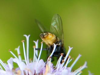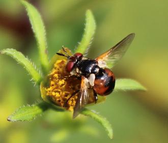 Très commune à la campagne, particulièrement en zone d’élevage, la Mouche automnale y accompagne habituellement le bétail. C’est elle en effet qui agace en permanence vaches et chevaux en venant lécher leurs sécrétions nasales ou oculaires. Avant d’installer leur progéniture sur les bouses des champs. Ce qui ne l’empêche pas de butiner à l’occasion !