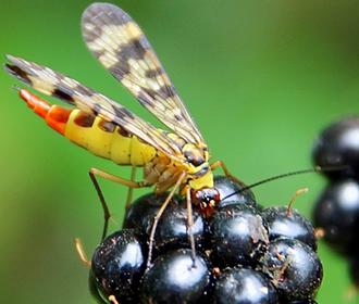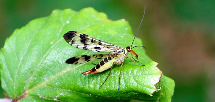 Avec son drôle de « bec » doté de solides mandibules, la Mouche-scorpion (Panorpa vulgaris) est principalement carnassière. Elle ne chasse pas pour autant et se contente de tailler en pièces les cadavres de rencontre. Notamment les dépouilles de mouches en tous genres.