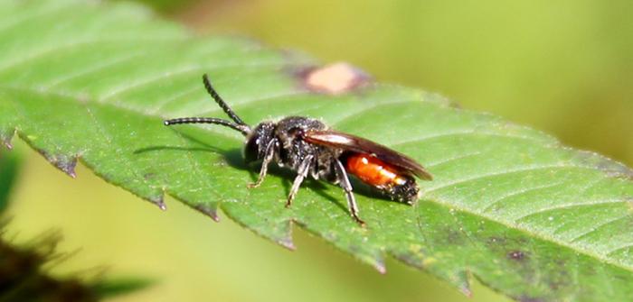 Sale temps pour les dernières abeilles sauvages de la saison ! Après la sécheresse qui a sérieusement limité les sources de nectar, voici les fortes pluies quotidiennes… Les fenêtres de tir s’en trouvent réduites d’autant pour les ultimes sorties de butinage. En l’occurrence, ce n’est pas vraiment un problème pour le Sphécode commun (Sphecodes ephippius).