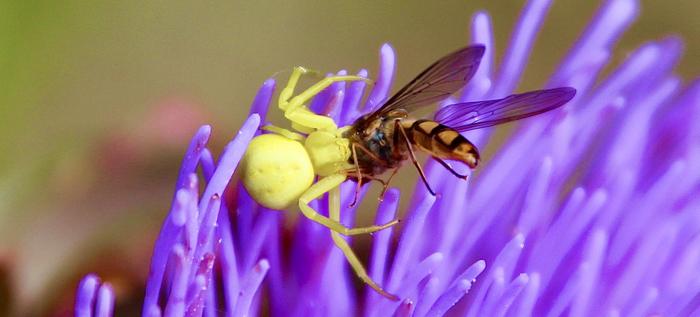 Caché entre deux pétales, il a bondi sans crier gare pour un infaillible baiser de la mort. Restait alors à se replier au revers de la corolle pour déguster les fluides internes de sa proie en toute discrétion.