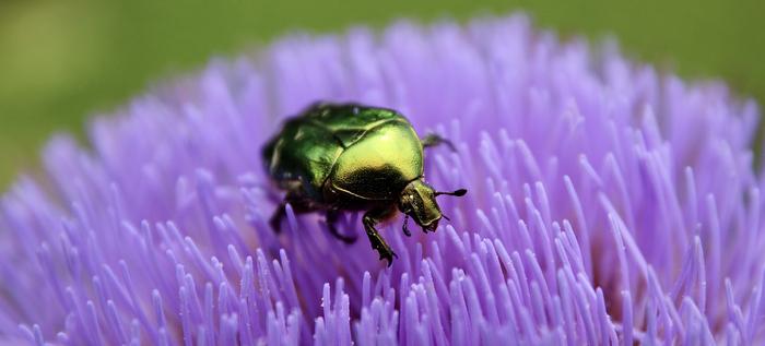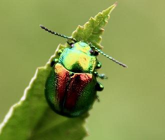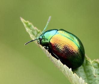 Un superbe petit coléoptère tout en rondeurs. Mais elle a beau être fastueuse, elle ne déroge pas à l’atavisme des chrysomèles. Elle a donc a bel appétit. Et ses larves plus encore. Des feuilles et encore des feuilles. De quoi vous tailler une sacrée réputation de ravageuse ! Fort heureusement, elle ne sévit pas au jardin. Elle préfère la végétation des prairies et des bords de chemin. Particulièrement les orties. Qu’à cela ne tienne !