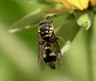 Thorax doré, ailes hyalines, abdomen noir rayé de blanc avec les fameuses marques jaunes triangulaires, discrètes chez la femelle, plus présentes chez le mâle. Alors, comment les distinguer ?