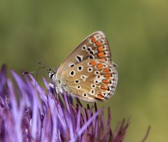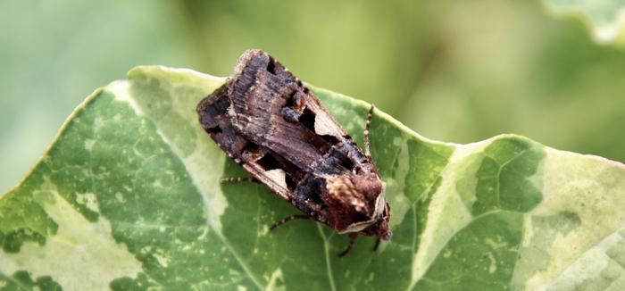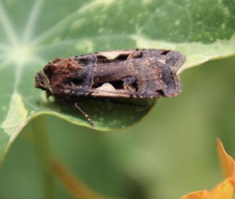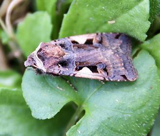 Hésitant entre brun gris et brun pourpre, la livrée de ce petit papillon le rend quasi invisible dans la végétation basse et les feuilles mortes où il se cache le plus souvent en journée. Mais, surtout nocturne, il volète encore au petit matin et s’attarde ici sur une feuille de capucine.