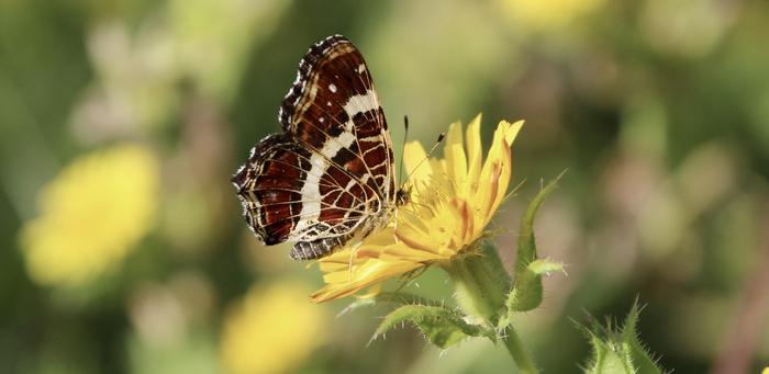 Alors, le brun devient orangé, voire saumon, le blanc claque et le noir lui-même se pare de reflets fauves. Et le revers des ailes, surtout, s’illumine de rouge brique, s’anime enfin d’un réseau aux mille nuances jaune-roux rehaussé d’ocelles cerclés de blanc.