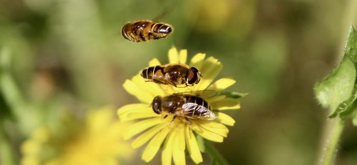 Le plus sûr moyen est d’être là au bon moment ! Monsieur Éristale interrompu se livre en effet à une parade nuptiale à nulle autre pareille dans la famille des Éristales. Une application originale pour la grande virtuosité des syrphes en matière de vol stationnaire !
