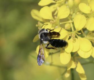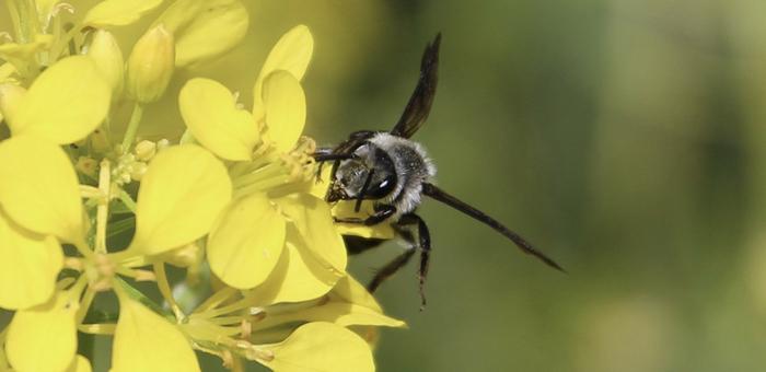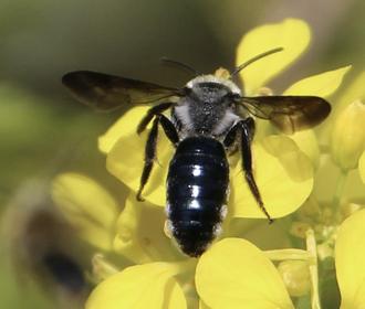 Voilà une abeille sauvage bien différente de ses deux cousines, l’Osmie rousse et l’Osmie cornue, traditionnellement sur le pont avant même le Mardi gras. L’Osmie bleuissante (Osmie caerulescencs) est nettement moins précoce. Elle émerge aux alentours de Pâques. Quand le printemps est déjà bien sonné.