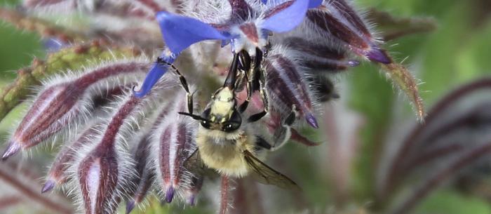 Tout juste émergées, l’imposante Abeille charpentière et la petite Anthophore plumeuse profitent également de cette nouvelle manne. Alors qu’ici et là le semi-naturel commence à pointer. Pour un peu, on le croirait en retard ! Décidément, la bourrache ne manquera pas cette année.