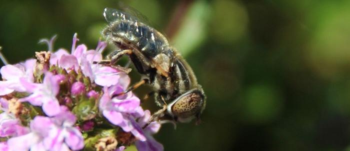 Comme chaque printemps à la mi-avril, le Syrphe des narcisses, alias le Syrphe cavalier (Merodon equestris) fait son apparition au jardin sur la planche des aromatiques. Plus précisément sur la sarriette en fleurs. La silhouette massive, le vol bruyant, la fourrure dense et colorée : on dirait un petit bourdon. Ou plutôt trois !
