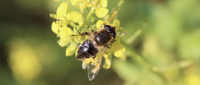 Peu flatteurs, ses noms populaires — Éristale gluant ou Mouche pourceau — ne le concernent pas directement. Lui est plutôt fin gourmet. De fleur en fleur. Avec nectar et pollen au menu. Quand ses larves ont un régime il est vrai moins délicat : trous d’eau fangeux et fossés envasés dont elles favorisent l’épuration en absorbant leurs matières organiques. À chacun et chacune sa gourmandise !