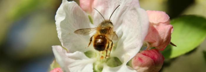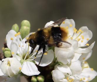 Elle installe ainsi sa progéniture dans le nid terricole d’une autre abeille. Plutôt du genre andrène. Notamment l’Andrène cendré dont la livrée noire et grise est également très présente en cette fin mars au verger.