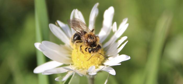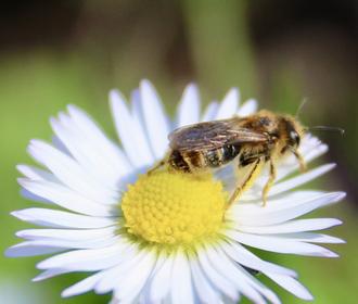 Quand les pâquerettes commencent à illuminer les allées du jardin, l’Andrène à pattes jaunes (Andrena flavipes) ne saurait tarder. Le Voilà ! Tout juste émergé sans doute, il semble encore tout engourdi. Priorité donc aux corolles les plus ensoleillées pour s’y gorger de nectar !