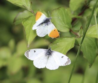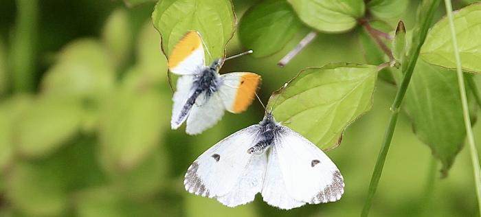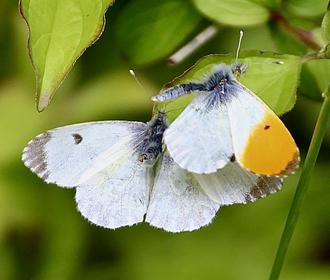 Combien de fois a-t-il arpenté le bord des haies du jardin, et des prairies alentours, avant, enfin, de trouver l’âme soeur ? C’est à peine si Monsieur Aurore (Anthocharis cardamines) prenait le temps de siroter un peu de nectar sur la Cardamine des prés ou l’Alliaire officinale. Furetant, chassant les autres mâles de « son » territoire, errant dans une interminable quête…
