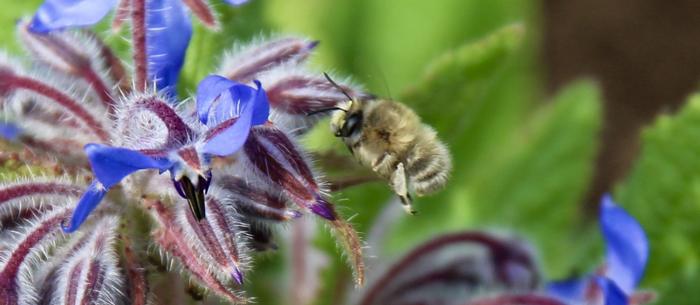 La bourrache est vraiment bonne fille ! Voilà deux ans, quelques vieilles carcasses avalent passé l’hiver sans trop d’encombres pour ramifier à nouveau et refleurir dès début mars. Avant même que l’habituel semi-naturel ne lève ! Une aubaine pour les premiers butineurs du jardin.