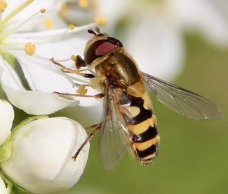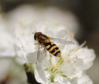 Fin mars. Le soleil aidant, les petits syrphes familiers du jardin sont pour la plupart de retour. À commencer par l’un des plus tranquilles et des plus resplendissants d’entre eux. Le Syrphe du groseillier. Il n’a que l’embarras du choix. Entre poiriers, pommiers et mirabellier en fleurs !