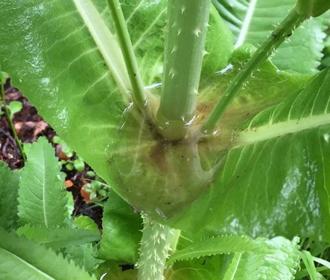 Car la nouvelle et solide rosette annonce la couleur. La future Cardère ne manquera pas de piquant. Dans tous les sens du terme. Avec, dès le printemps, de larges feuilles opposées et soudées, formant une coupe creuse propre à recueillir les eaux de pluie : le fameux Cabaret des oiseaux !