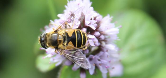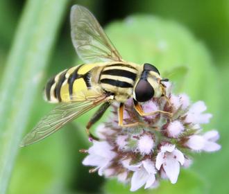 Malmenés tout l’été par sècheresse et canicules, les syrphes avaient quasi disparu du jardin comme des prairies alentour. Les voilà de retour avec l’automne. À commencer par l’un des plus jolis qui soient. L’Hélophile à bandes grises (Helophilus trivittatus). Au rendez-vous comme tant d’autres de l’incontournable menthe aquatique !