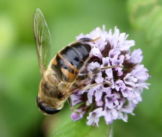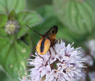 À vrai dire, même si le jardin se requinque un peu avec l’humidité de l’automne, l’Éristale horticole (Eristalis horticola) ne s’y aventure guère en ce début octobre. Les sources de nectar y sont rares en effet après quatre mois de canicules et de sècheresse. Alors vivent les prairies humides et leurs généreuses stations de menthe aquatique !