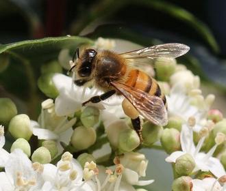 Quelques timides allées et venues du côté du laurier-tin. Au dernier jour de janvier, on est évidemment loin de la vrombissante agitation printanière. Mais une petite escouade d’abeilles domestiques est bien là, affairée sur les denses bouquets de petites fleurs blanches.