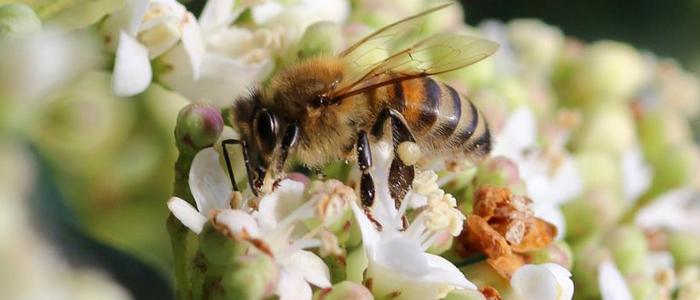 C’est tout l’intérêt du laurier-tin. Fleuri depuis la fin de l’automne, sa production de nectar et de pollen est disponible pour les butineurs les moins frileux quand la plupart des autres sources sont taries.