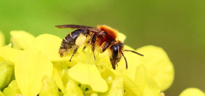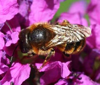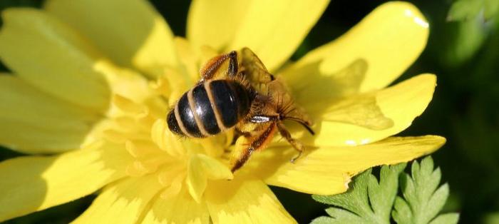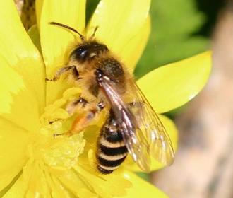 En cette fin d’hiver, les andrènes comptent sans nul doute parmi les abeilles sauvages les plus précoces du jardin. Celle-ci retient l’attention par son lumineux thorax roux. Le contraste est saisissant avec l'abdomen noir luisant, à peine rehaussé d'une fine pilosité latérale grise.