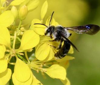 L’Andrène agile émerge ordinairement en avril lorsque les arbres fruitiers du jardin amorcent leur floraison. Cela dit, pour garnir généreusement le garde-manger des nids creusés au sol, elle a aussi un faible pour la moutarde blanche. Ne l’appelle-t-on pas parfois l’Andrène des crucifères ?