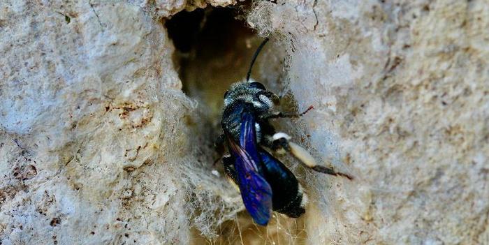 Les joints de mortier séculaires se prêtent il est vrai merveilleusement aux excavations. Elles sont ainsi plusieurs dizaines à s’affairer. Cela dit, la promiscuité à ses limites. Car l’Andrène agile reste une abeille solitaire. Ensemble, elles vont constituer une petite « bourgade ». Soit. Pour autant, chacune chez soi !