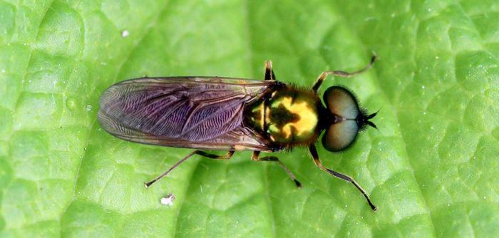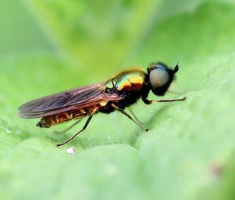 Malgré sa petite taille, 7-9 mm, elle ne passe pas inaperçue. Surtout sous le soleil. La Chloromyie agréable (Chloromyia formosa) ne tient pas son nom de son comportement il est vrai tranquille. Elle est avant tout agréable à l’œil. Pour peu qu’on s’y arrête un peu.