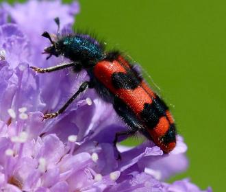 Il y a des appellations qui sonnent comme un acte d’accusation. Le Clairon des ruches (Trichodes alvearius) passe ainsi pour un ravageur apicole. Une légende. Ce sont en effet les nids d’abeilles sauvages - et non domestiques - qui sont la cible de ce petit coléoptère aussi coloré que poilu.