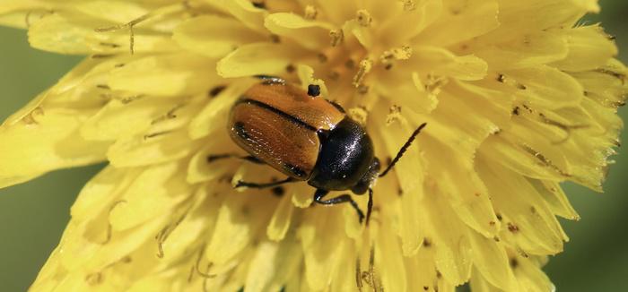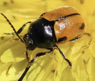 Amateur de composées jaunes, le Cryptocéphale à corselet rugueux (Cryptocéphalus rugicollis) apprécie notamment les crépides en bordure du jardin. En attendant les marguerites. On le dit « rugueux » par allusion à son thorax bombé, noir luisant, ponctué et très finement couvert de courtes soies blanches. À peine visibles à vrai dire.