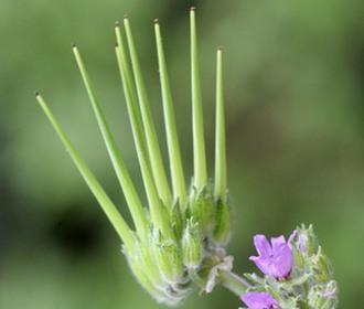 Rien de très spectaculaire. La surprise vient plutôt de la fructification. Chaque fleur engendre en effet un akène en forme de long bec dressé. D’où le nom de « bec de grue » ordinairement donné à l’Érodium musqué et à ses cousins. À maturité, ledit bec desséché s’enroulera en spirale pour constituer une sorte de tarière. Et, ainsi équipée, chaque graine aura alors la capacité de s’auto-enfouir ! Mais ça, c’est une autre histoire…