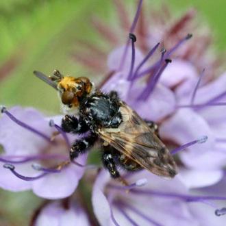 Elles ne se ressemblent guère. La première est à dominante noire, le thorax brun grisâtre, les pattes et les flancs animés de petites touffes blanches. La silhouette plus ramassée, la seconde a un côté nounours, avec une fine fourrure gris fauve. C’est surtout une stakhano du butinage. Vive, toujours en mouvement, insaisissable.
