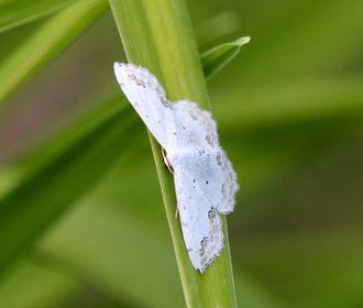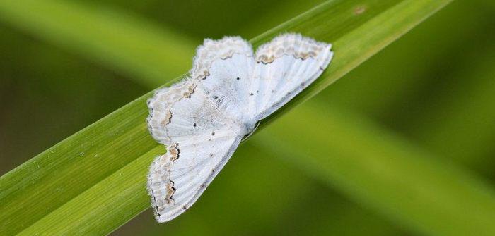 Ornée ? Si, si ! Rien de spectaculaire certes mais tellement raffiné. Laissez-vous donc prendre au charme diaphane de la Phalène ornée (Scopula ornata). Une blancheur envoûtante, voilée de gris, délicatement mouchetée de noir et, surtout, bordée d’une bande ondoyante de dentelle comme on n’en fait plus !