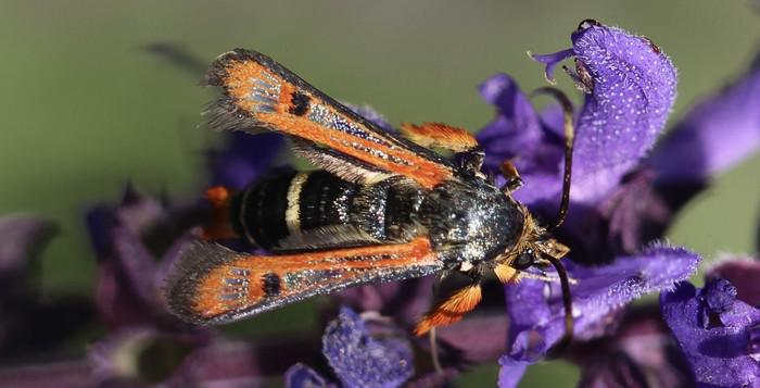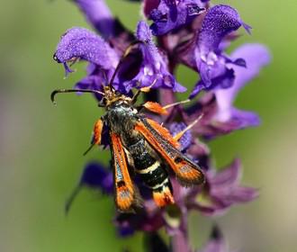 De drôles de papillons. Et une très mauvaise réputation avec ça ! Il est vrai que les chenilles de la famille Sésie sont xylophages et creusent des galeries dans le bois vivant. Pommier, peuplier ou lilas notamment selon les espèces. Cela dit, la Sésie de l’Oseille (Pyropteron chrysidiformis) est, comme son nom l’indique, moins ambitieuse.