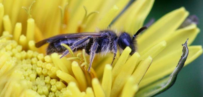 Avec une seule génération annuelle, au printemps, l’Andrène noir-bronze vient d’apparaître au jardin. Jusqu’en juillet, on repère facilement cette tranquille abeille solitaire, à son allure dodue, sur les fleurs de saison. À commencer par les pissenlits et les premiers prunelliers en fleurs. C’est surtout, le moment venu, un excellent pollinisateur des arbres fruitiers. Il sera alors temps, pour chaque femelle, de creuser et d’aménager le nid de sa progéniture. Et de charger de pollen le fameux manchon orangé !