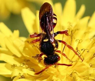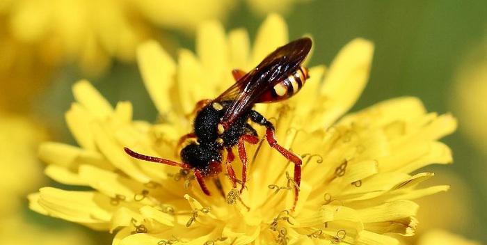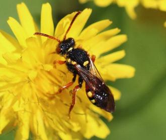 Chez les « Nomades », les femelles parasitent les nids d’autres abeilles solitaires. Avec une préférence pour celles du genre Andrène. Chacune sa spécialité ! Pour la Nomade fardée, c’est l’Andrène à pattes jaunes. L’une et l’autre fréquente actuellement les pissenlits. Mais une seule récolte du pollen pour approvisionner sa progéniture. Devinez laquelle !
