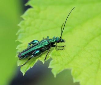Il est des mâles qui roulent les mécaniques avec leurs gros bras. Pour l’Oedémère noble (Oedemera nobilis), l'ostentation virile passe plutôt par les « cuisses ». Ou plus exactement les fémurs des pattes postérieures. Impressionnants !