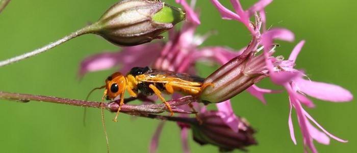 Si les larves sont phytophages, les adultes fréquentent les fleurs de saison. Pollen et nectar de Lychnis notamment sur les prairies et ombelles de Cornouiller sanguin dans les haies. Cela dit, avec pareilles mandibules, la Pamphilie du bouleau ne rechigne pas devant les petits insectes de rencontre !