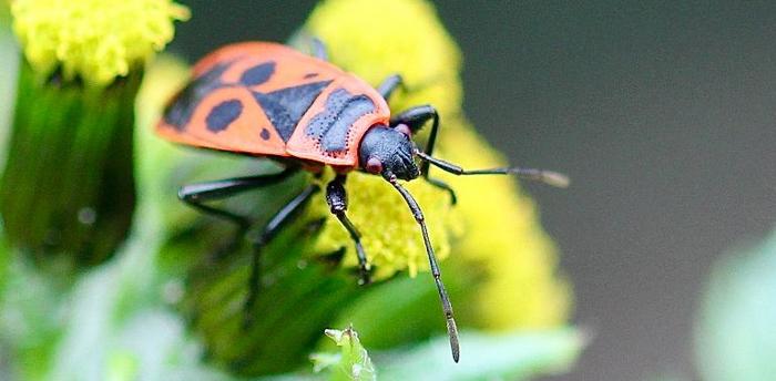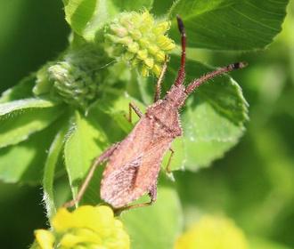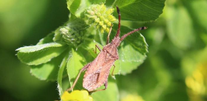 N’allez pas croire que la Punaise dentée (Coriomeris denticulatus) soit une croqueuse ! Non, comme toute punaise qui se respecte, c’est bien une piqueuse-suceuse pourvue d’un long rostre pour siphonner la sève des végétaux. Son nom vernaculaire ne fait donc pas allusion à ses pièces buccales !