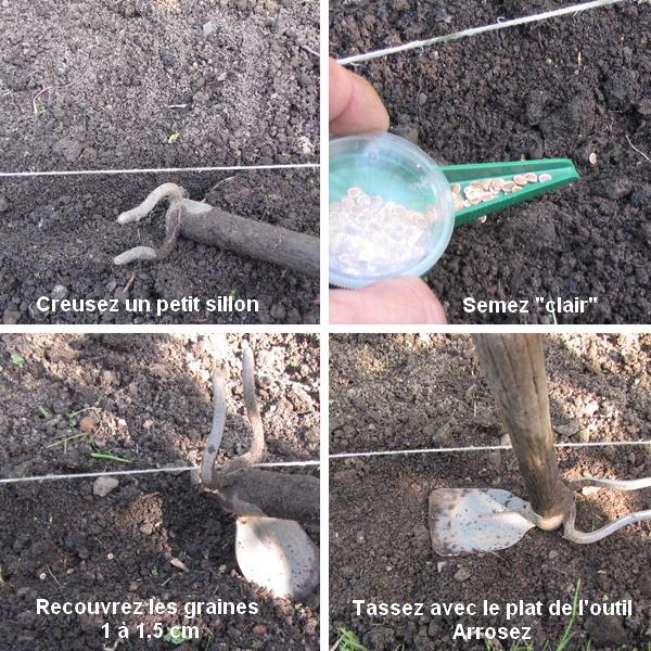 Les graines se sèment en place en lune descendante de mars à juin. Les rangs sont espacés de 30 à40 cm. Les graines de panais sont recouvertes avec 1 cm de terre fine, puis plombez fortement avec le dos du râteau.