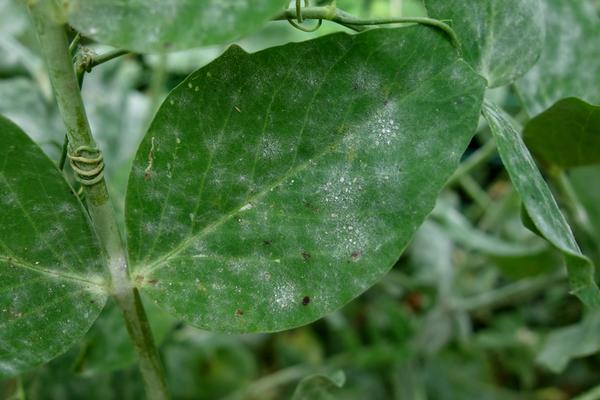 Feuilles et cosses sont couvertes d’un enduit poudreux blanchâtre. Les dégâts sont surtout importants par temps sec, avec de la rosée.