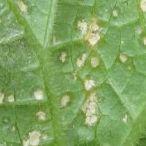 Taches vert clair sur les feuilles correspondant à des pustules brunes à la face inférieure.